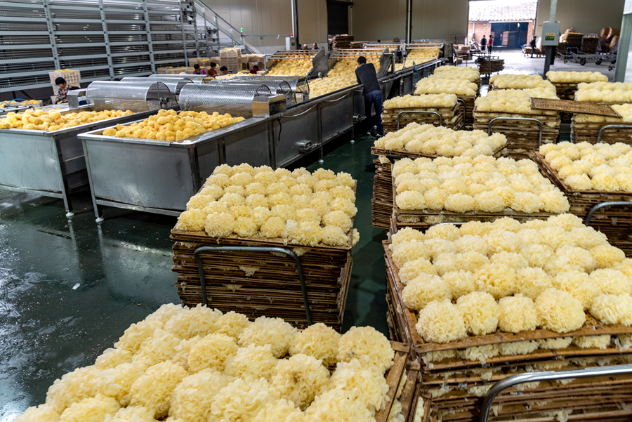 | Bengkel pengeluaran cendawan jeli putih di Gutian. Foto oleh Wang Xiabing |