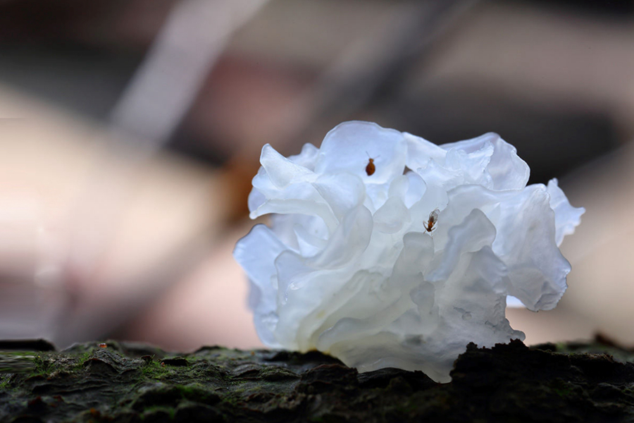 | Cendawan jeli putih. Foto ihsan Pusat Media Bersepadu Kaunti Gutian |