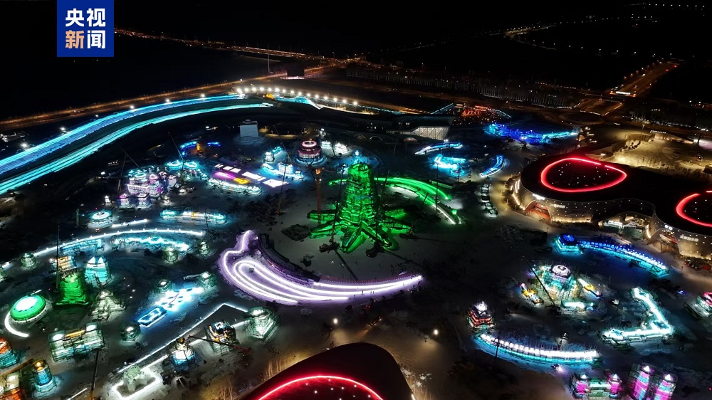 Bangunan ais tertinggi di Dunia Ais dan Salji Harbin ke-26, iaitu menara utama "Asia Concentric", berjaya disiapkan dan memasuki fasa penggilapan halus dan pelarasan pencahayaan.