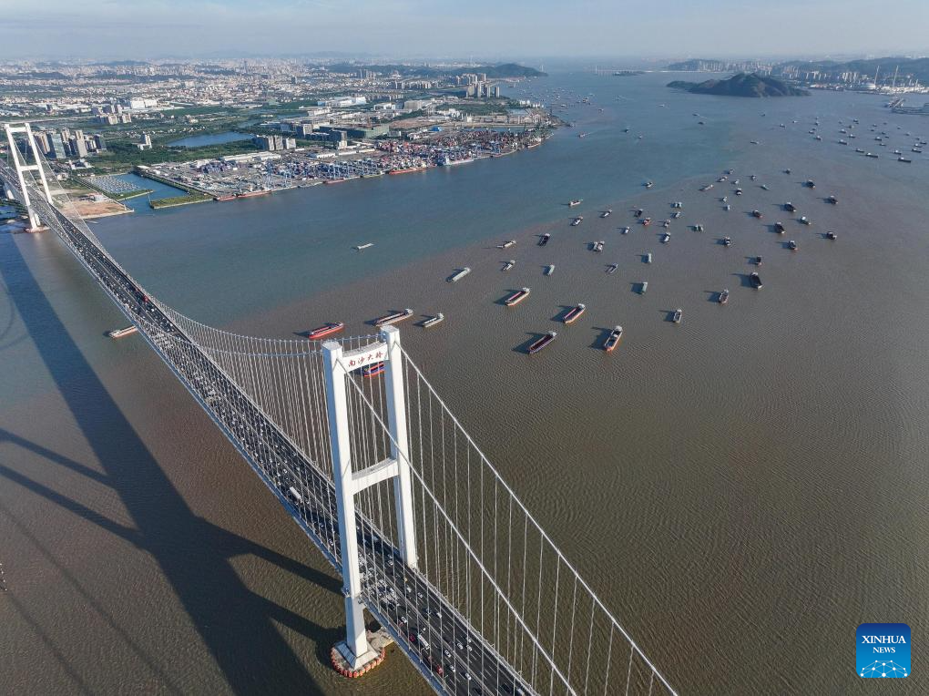 | Foto dron bertarikh 3 Julai 2024 ini menunjukkan kenderaan di laluan Shenzhen-Zhongshan, provinsi Guangdong, selatan China. (Xinhua/Mao Siqian) |