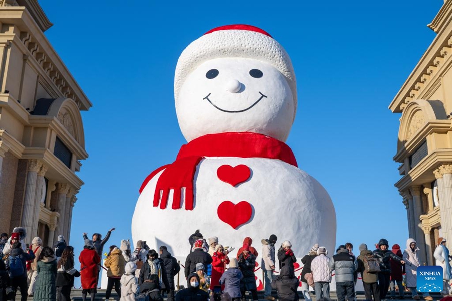 Foto-foto bertarikh 17 Disember 2024 yang diambil oleh jurugambar agensi berita Xinhua, Zhang Tao ini memaparkan gambar orang salji gergasi dari segenap dimensi.