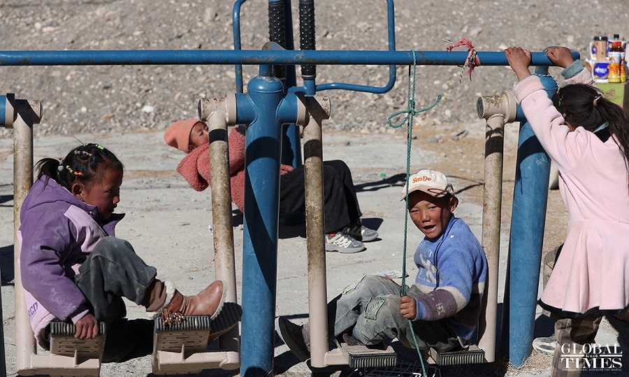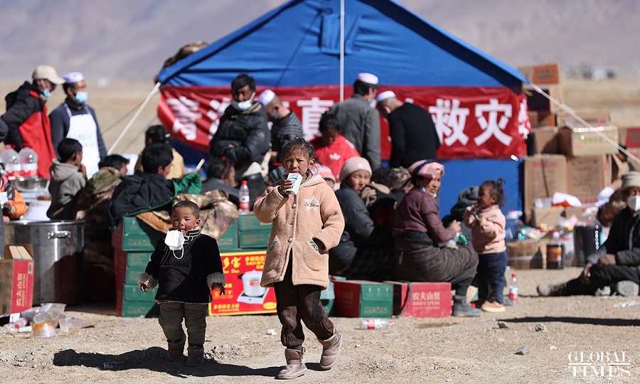 | Kanak-kanak yang terjajas akibat gempa bumi di Perbandaran Tsogo di kaunti Dingri, Xigaze, di Wilayah Autonomi Xizang pada 9 Januari 2025. (Global Times/Cui Ming) |