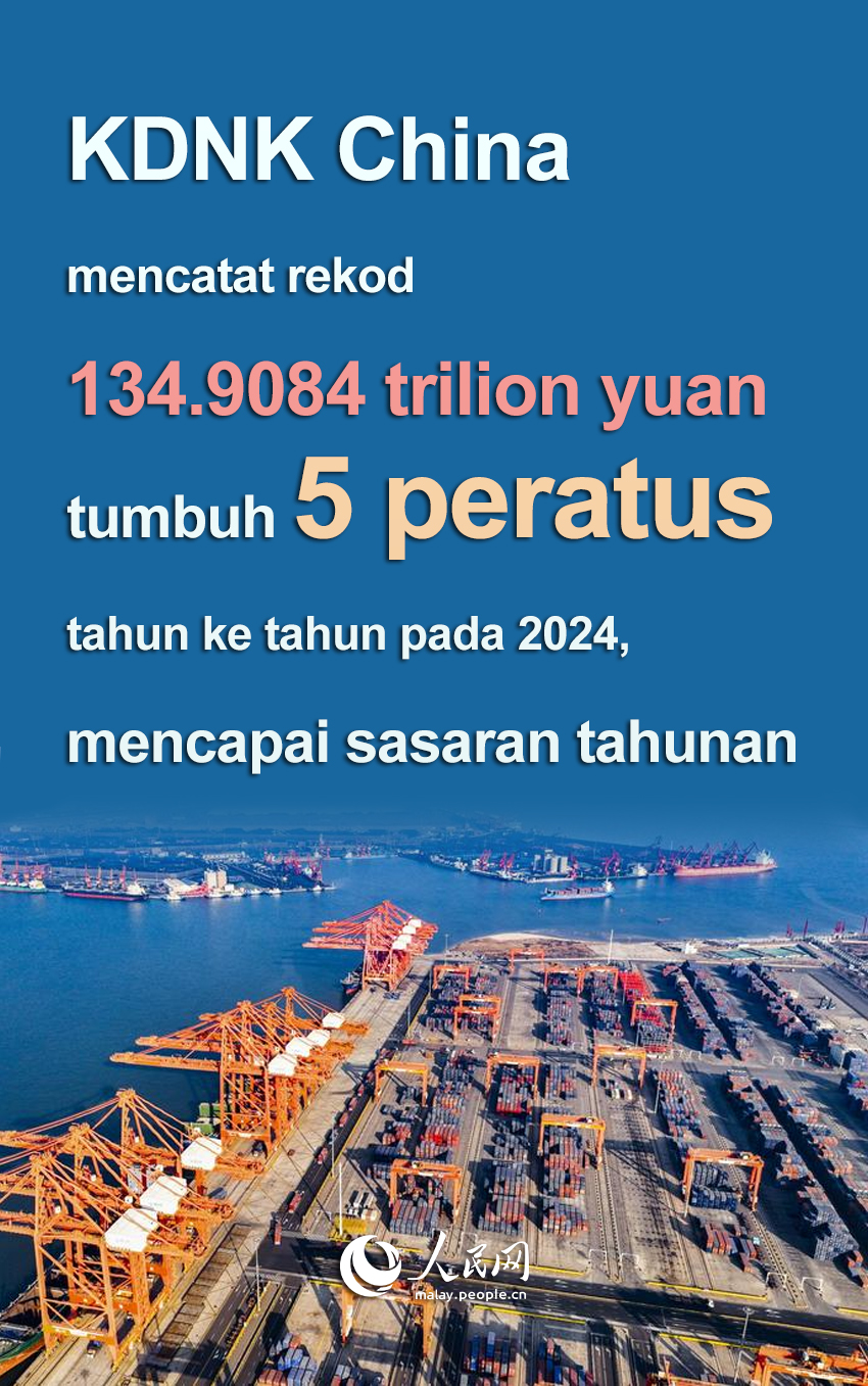 Keluaran dalam negara kasar (KDNK) China tumbuh 5 peratus tahun ke tahun pada 2024, mencapai sasaran kerajaan untuk sepanjang tahun, menurut data rasmi pada Jumaat.