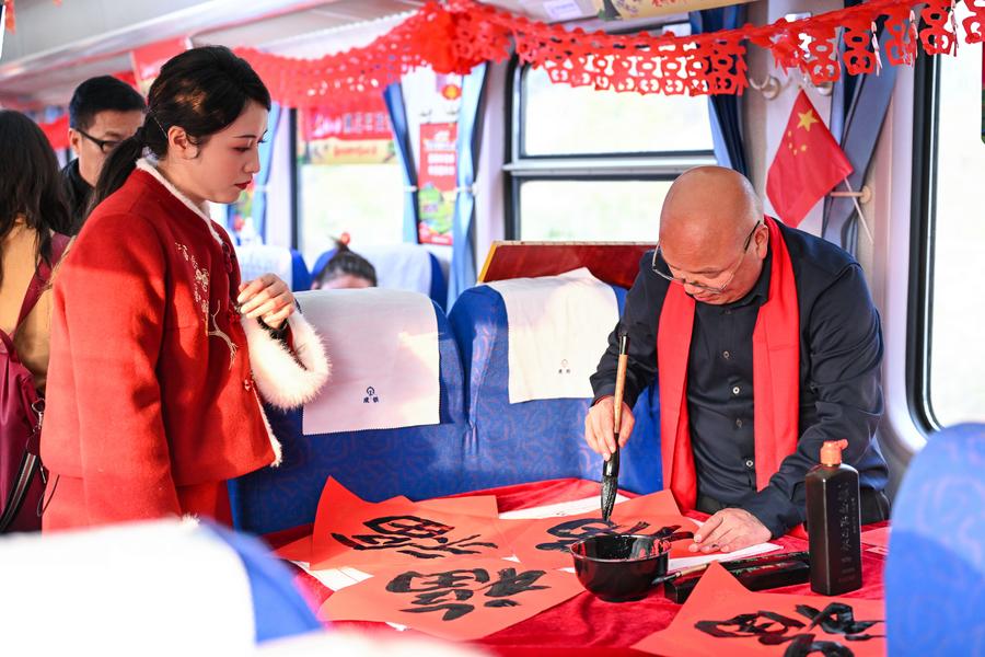 Sebagai tanda mengalu-alukan kedatangan perayaan Tahun Baru Cina (TBC) 2025 tidak lama lagi, satu ‘gala kampung’ telah diadakan di dalam kereta api No. 5640 di landasan Guiyang-Yuping pada Sabtu, lapor agensi berita Xinhua.