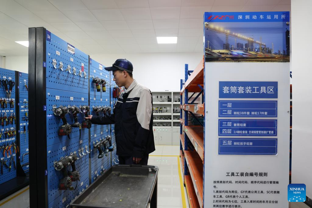 Foto-foto dari lensa jurugambar agensi berita Xinhua, Mao Siqian bertarikh 17 Januari 2024 ini memaparkan perkhidmatan pintar yang digunakan di depot HSR di bandar yang terletak di Provinsi Guangdong, selatan China.