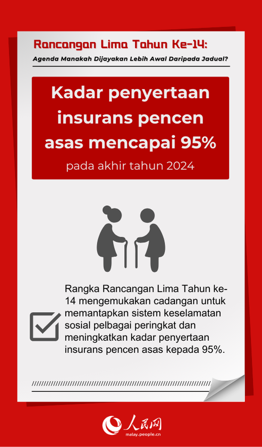 Rangka Rancangan Lima Tahun ke-14 mengemukakan cadangan untuk memantapkan sistem keselamatan sosial pelbagai peringkat dan meningkatkan kadar penyertaan insurans pencen asas kepada 95%.