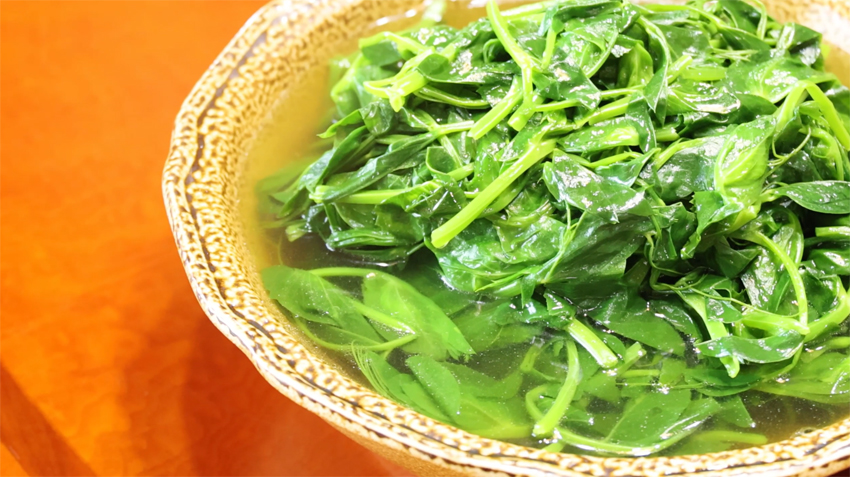| Foto menunjukkan sup pucuk kacang pea. (Foto ihsan Jabatan Publisiti Jawatankuasa Kaunti Yongde Parti Komunis China) |
