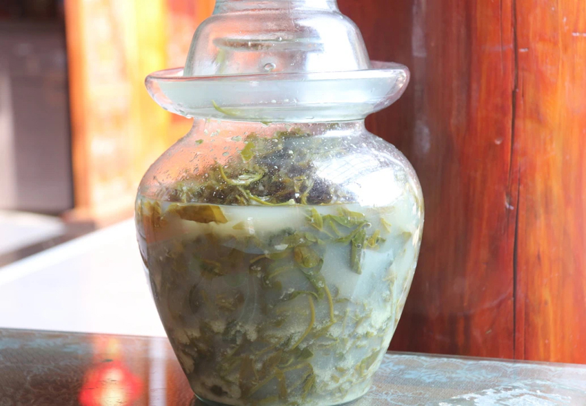 Selepas ditapai selama satu hingga dua minggu, kepahitan berubah menjadi rasa yang kaya. Makanan istimewa ini bukan sahaja menyelerakan dan menyegarkan, tetapi juga digandingkan dengan bahan lain dalam hidangan seperti salad sejuk, masakan bertumis dan sup.
