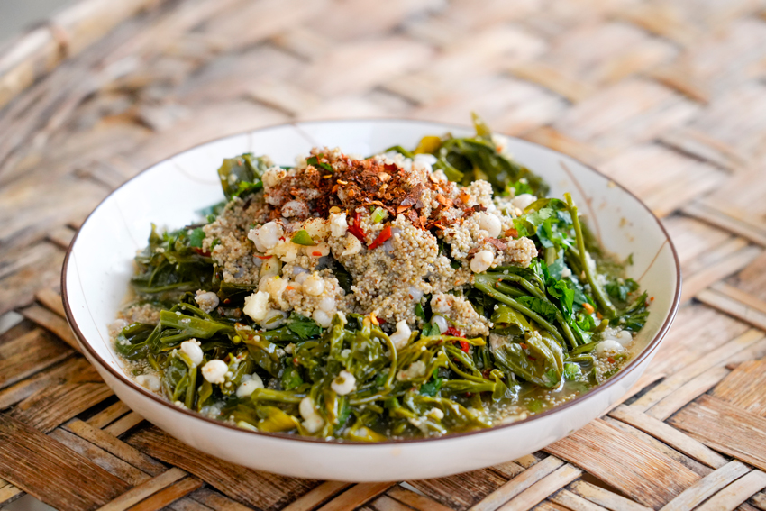 | Foto hidangan berasaskan pucuk Crateva unilocularis. (Foto ihsan pusat gabungan media kaunti Longchuan) |