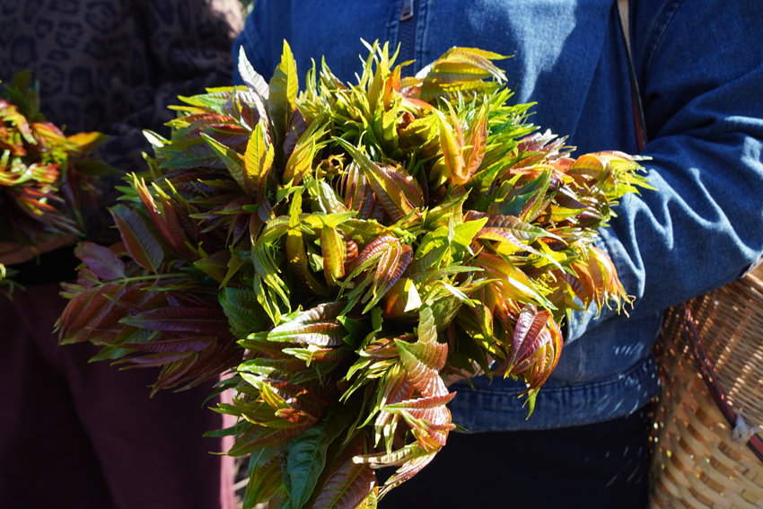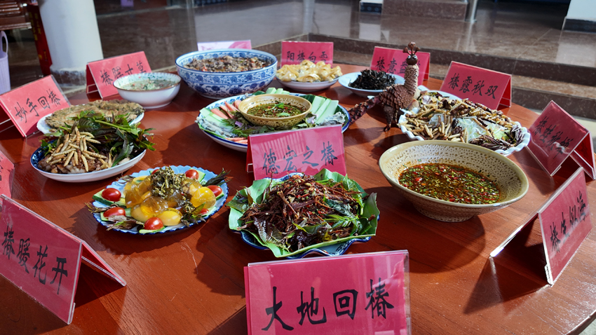 | Foto hidangan berasaskan pucuk mahogani Cina. (Foto ihsan kerajaan tempatan perbandaran Xuangang, bandar Mangshi, Kawasan Autonomi Dehong Dai dan Jingpo) |