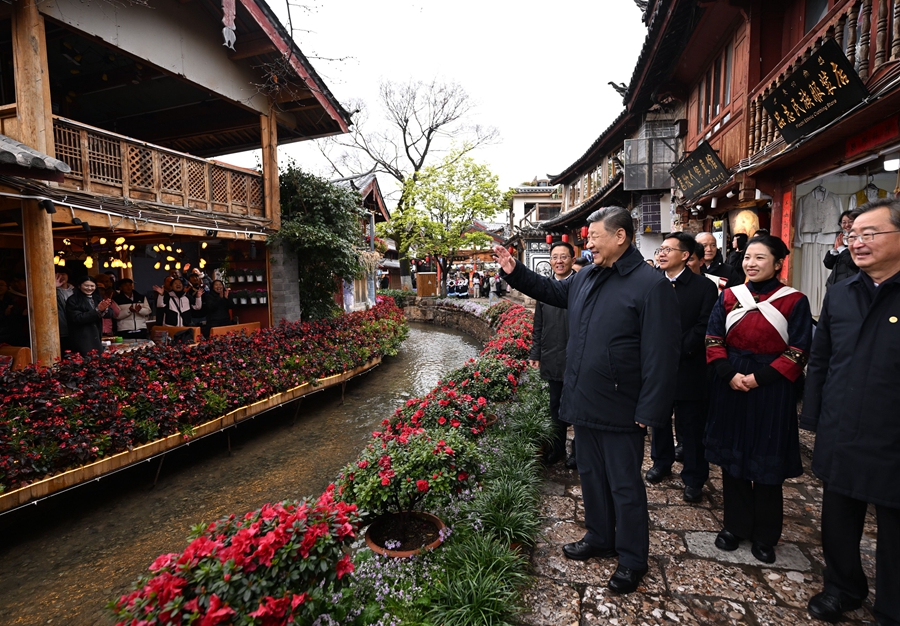 Beliau mengunjungi sebuah taman industri flora moden dan Kota Kuno Lijiang untuk mengetahui usaha membangunkan pertanian khas setempat, memperkasakan perlindungan dan penggunaan warisan budaya dan sejarah, serta meningkatkan kesedaran masyarakat tempatan untuk mengukuhkan pembinaan komuniti bangsa China.