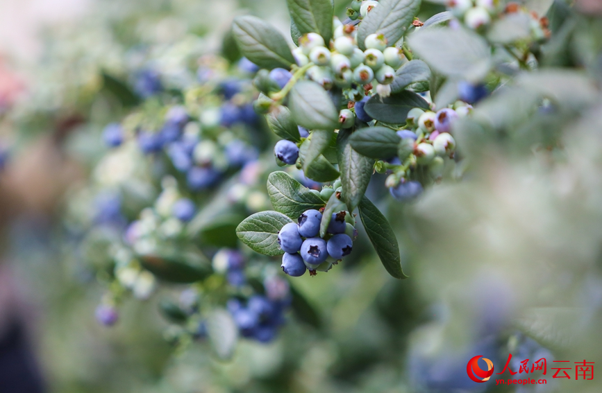 | Foto beri biru di sebuah tapak penanaman di Kaunti Autonomi Yi Yangbi, Kawasan Autonomi Bai Dali, Provinsi Yunnan, barat daya China. (People’s Daily Online/Hu Zunhui) |