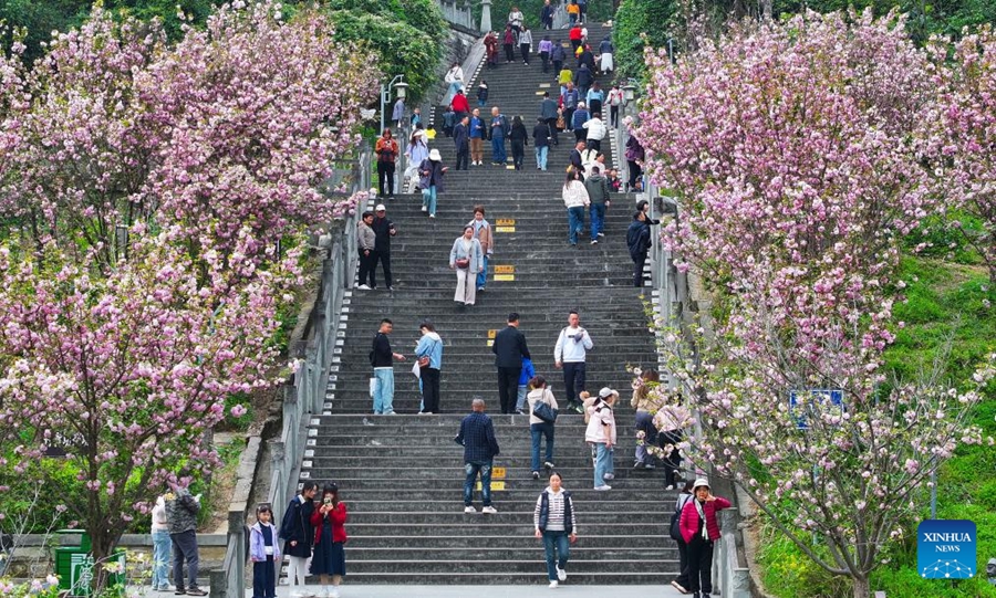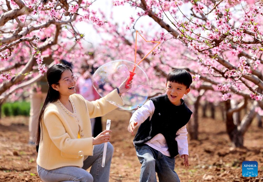 | Pelancong melawat sebuah taman pertanian di bandar Chongqing, barat daya China, 6 April 2025. (Foto oleh Qin Tingfu/Xinhua) |