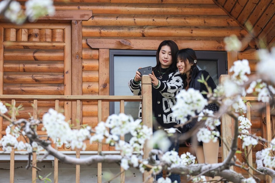 | Bunga pear bermekaran pada dahan pokok di Dangshan. (People’s Daily Online/Zhang Jun) |