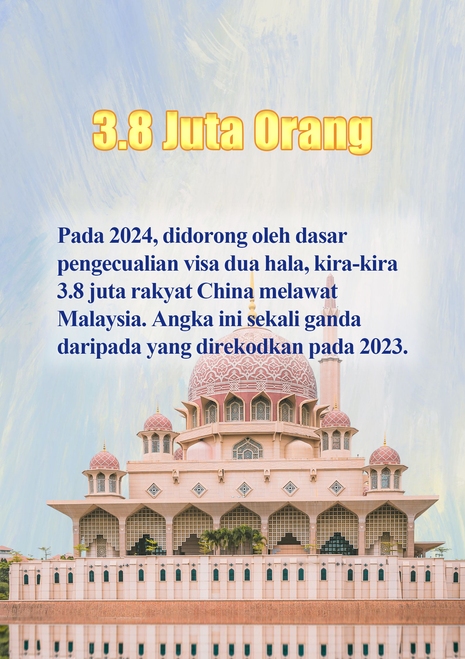 Pada 2024, didorong oleh dasar pengecualian visa dua hala, kira-kira 3.8 juta rakyat China melawat Malaysia. Angka ini sekali ganda daripada yang direkodkan pada 2023, dengan lebih 500 penerbangan antara kedua-dua negara setiap minggu. China juga destinasi pelancongan yang popular dalam kalangan rakyat Malaysia.