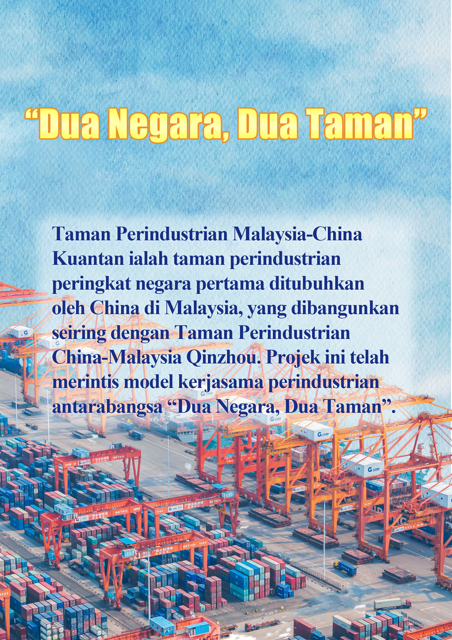 Taman Perindustrian Malaysia-China Kuantan ialah taman perindustrian peringkat negara pertama ditubuhkan oleh China di Malaysia, yang dibangunkan seiring dengan Taman Perindustrian China-Malaysia Qinzhou. Projek ini telah merintis model kerjasama perindustrian antarabangsa “Dua Negara, Dua Taman”. Dengan bergantung pada kurniaan semula jadi, kelebihan perindustrian serta sumber pasaran kedua-dua negara, sistem taman perindustrian ini dipacu pembangunannya hingga menjadi model kerjasama ekonomi dan inovasi antara dua negara.