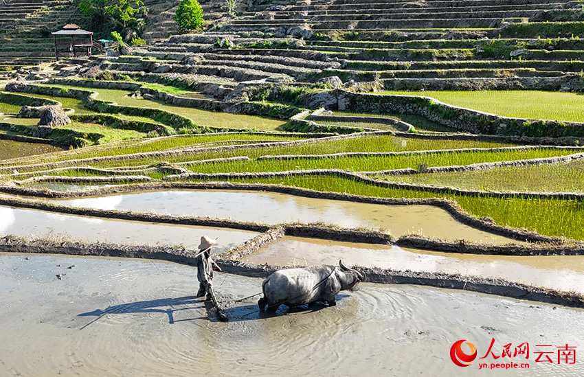 Air yang mula memenuhi sawah menandakan bermulanya tempoh pertanian musim bunga bagi kumpulan etnik Hani tempatan, yang meraikan dengan Pesta Kaiyangmen tradisional.