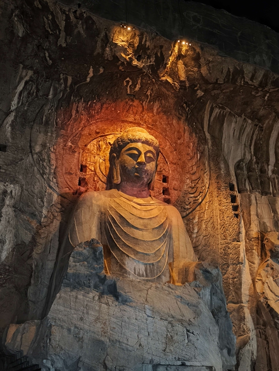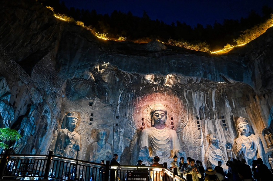 | Foto menunjukkan pemandangan malam Groto Longmen di Luoyang, Provinsi Henan di tengah China. (People’s Daily Online/Lu Yang) |