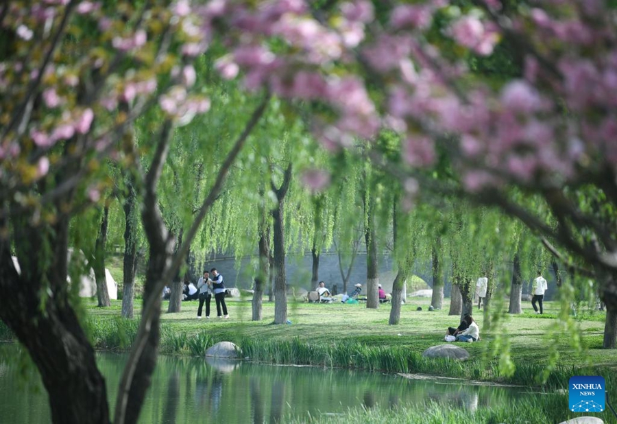 | Orang ramai menikmati meluangkan masa lapang di sebuah taman di Xi’an, Provinsi Shaanxi, barat laut China pada 8 April 2025. (Xinhua/Zhang Bowen) |