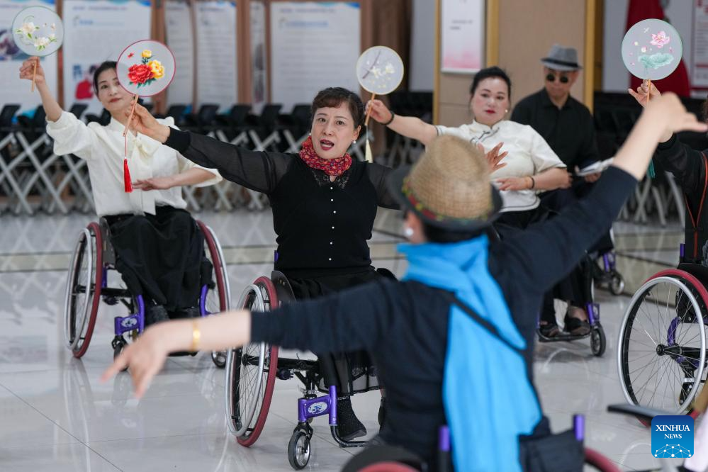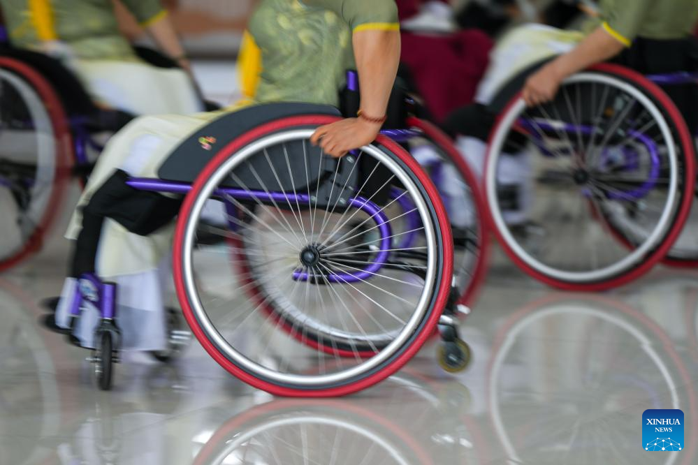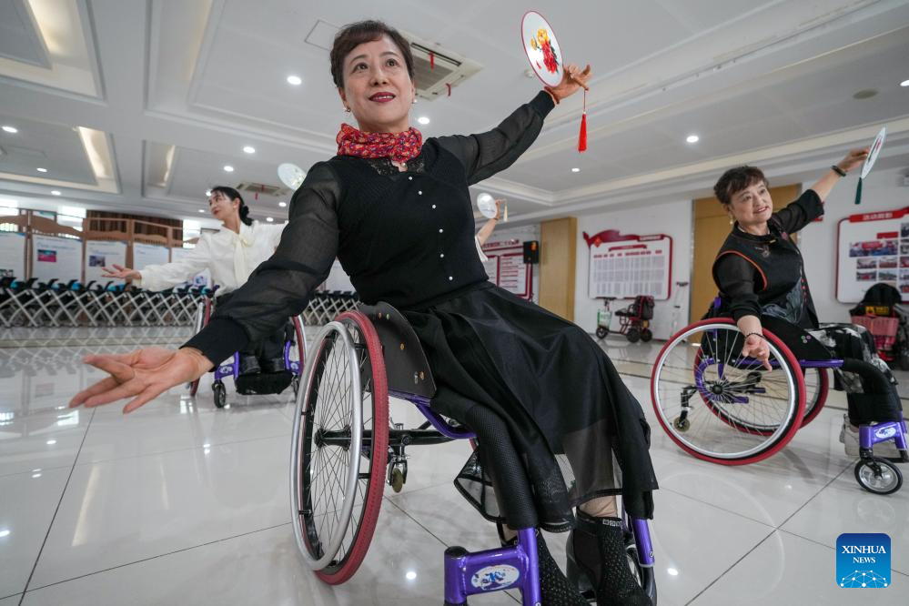 | Anggota pasukan tarian kerusi roda membuat persembahan raptai di Nanjing, Provinsi Jiangsu, timur China pada 27 April 2025. (Xinhua/Li Bo) |
