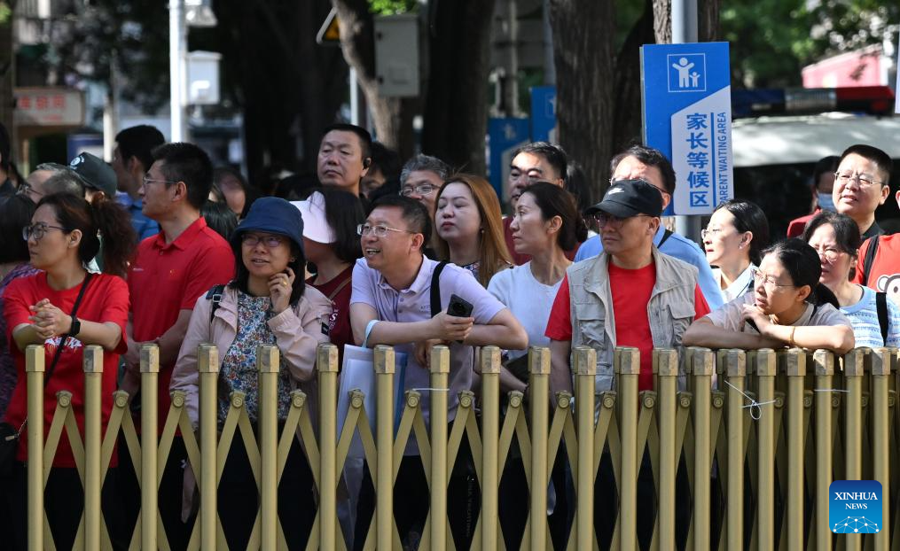 | Ibu bapa menunggu di luar kawasan peperiksaan di Beijing, ibu kota China pada 7 Jun 2025. (Xinhua/Li Xin) |