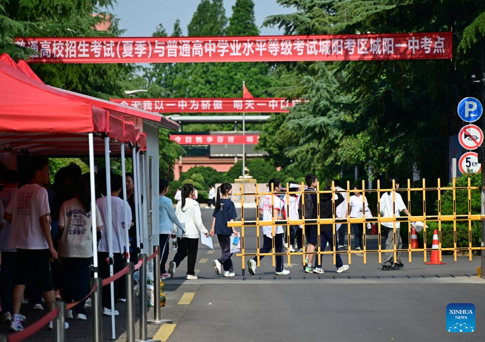| Pelajar berjalan masuk ke dalam tempat peperiksaan kemasukan universiti kebangsaan di Shenyang, Provinsi Liaoning di timur laut China pada 7 Jun 2025. (Xinhua/Pan Yulong) |
