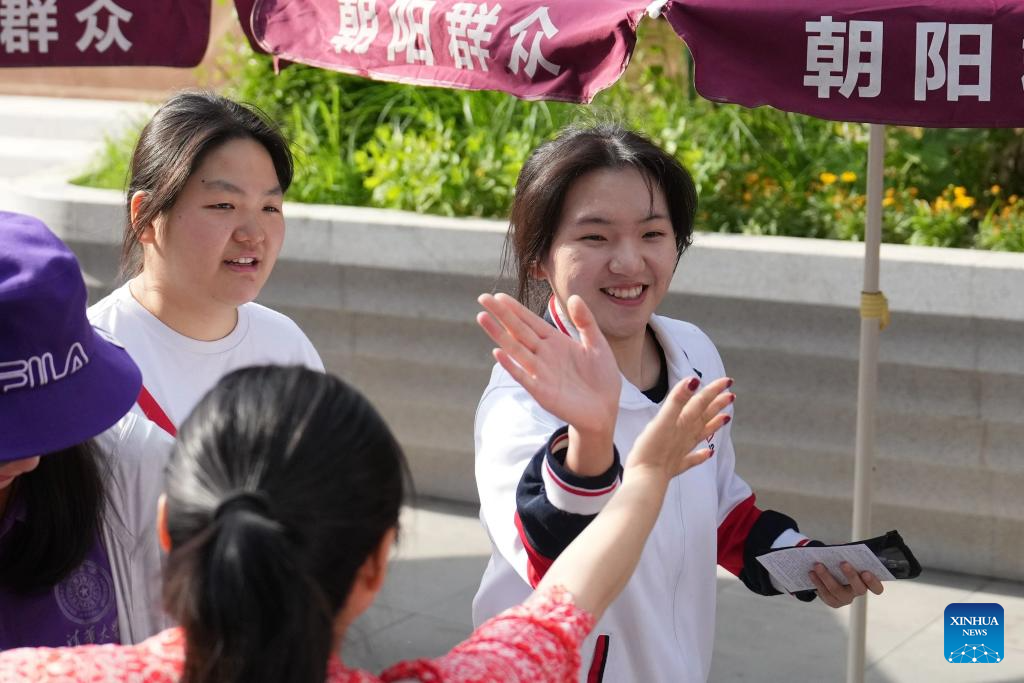 | Pelajar keluar dari tempat peperiksaan kemasukan universiti kebangsaan di Beijing, China pada 7 Jun 2025. (Xinhua/Chen Yehua) |