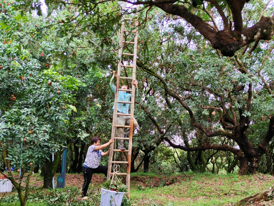| Orang kampung sedang memetik laici di kebun Gongyuan di pekan Genzi, Gaozhou, bandar bertaraf kaunti di bawah Maoming di Provinsi Guangdong, selatan China. (People’s Daily Online/Ning Yuying) |