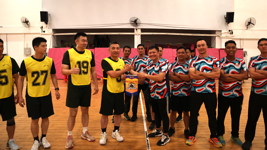 | Wakil CCG dan APMM mengadakan perlawanan persahabatan sukan di Sanya. (Foto ihsan CCG) |