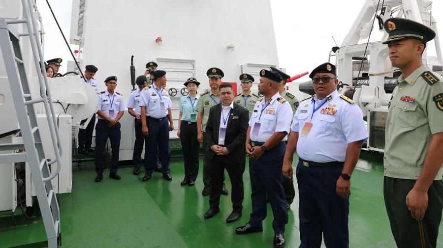 | Delegasi APMM melawat kapal Dongmen milik CCG. (Foto ihsan CCG) |