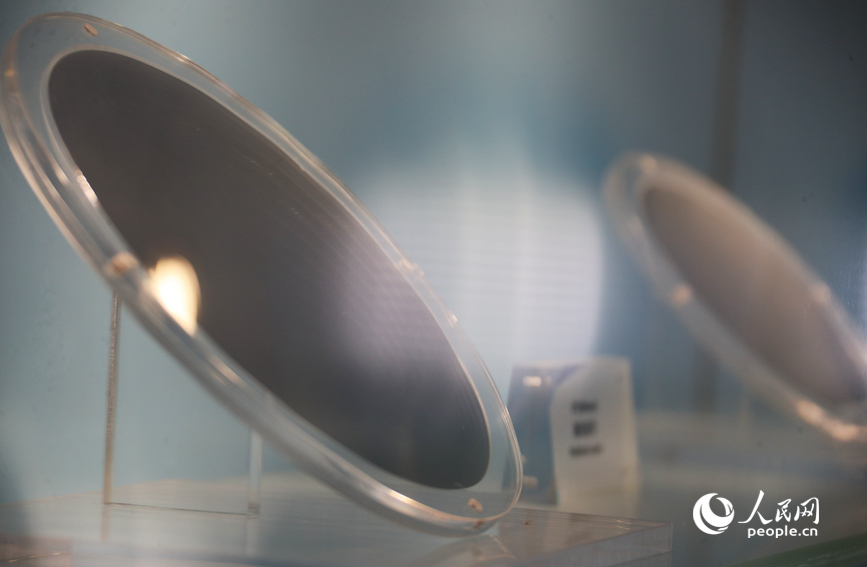 | Foto memperlihatkan wafer silikon bersaiz 12 inci yang dikeluarkan oleh Wafer Works (Zhengzhou) Corporation di Zon Ekonomi Lapangan Terbang Zhengzhou di Provinsi Henan, utara China. (People’s Daily Online/Huo Yaping) |