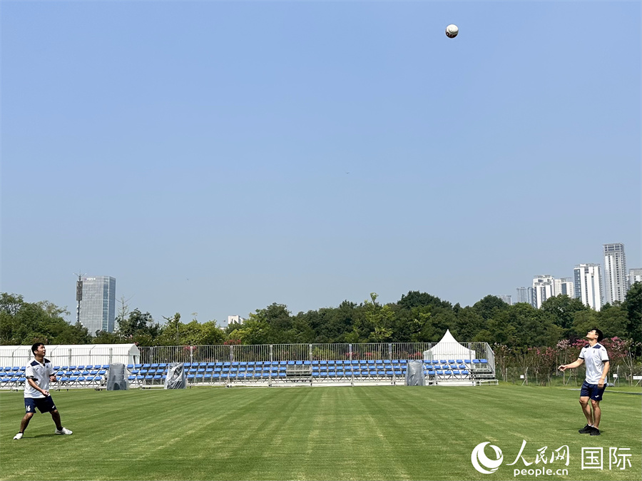 | Pemain faustball beraksi di tapak pertandingan faustball World Games 2025 yang dijadualkan berlangsung pada 7 hingga 17 Ogos di Chengdu, ibu provinsi Sichuan, barat daya China. (Sun Shuyu/People’s Daily Online) |