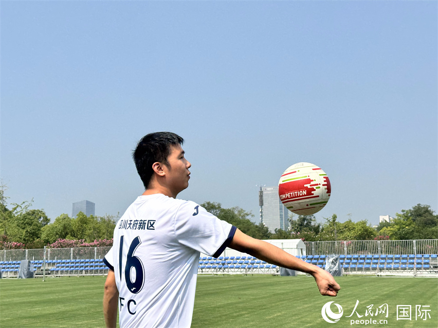 | Seorang pemain faustball menunjukkan tekniknya di tapak pertandingan faustball World Games 2025 yang dijadualkan berlangsung pada 7 hingga 17 Ogos di Chengdu, ibu provinsi Sichuan, barat daya China. (Sun Shuyu/People’s Daily Online) |