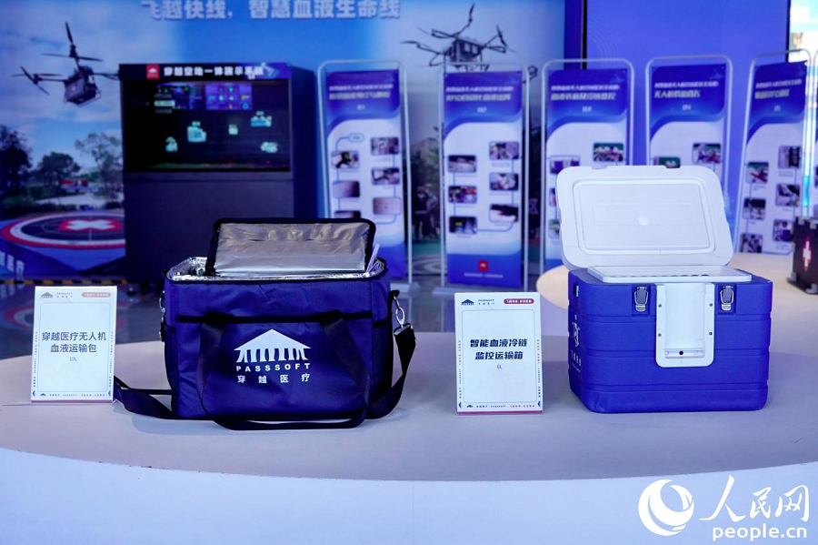 | Satu projek penghantaran darah pintar, dikuasakan oleh data dan dron didorong AI, mampu terbang di udara untuk menghantar darah kecemasan kepada hospital dalam tempoh 15 minit sahaja. (People’s Daily Online/Yang Haoyu) |
