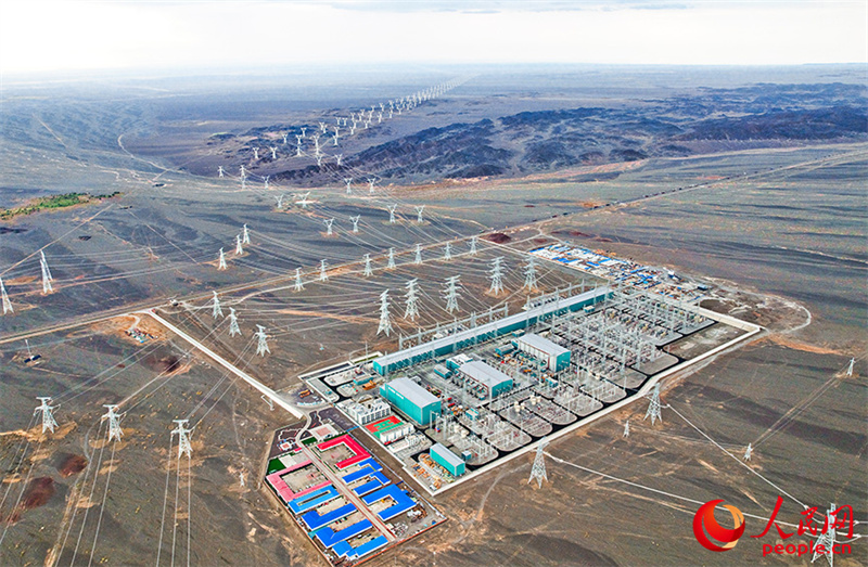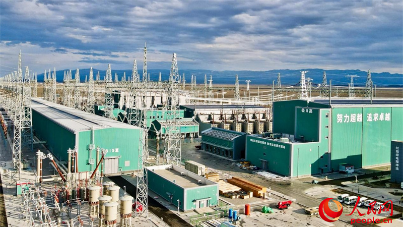 | Foto mempamerkan stesen penukar Barkol projek penghantaran kuasa Hami-Chongqing arus terus voltan ultra tinggi ±800 kilovolt (UHV DC). (People’s Daily Online/Li Xinyang) |