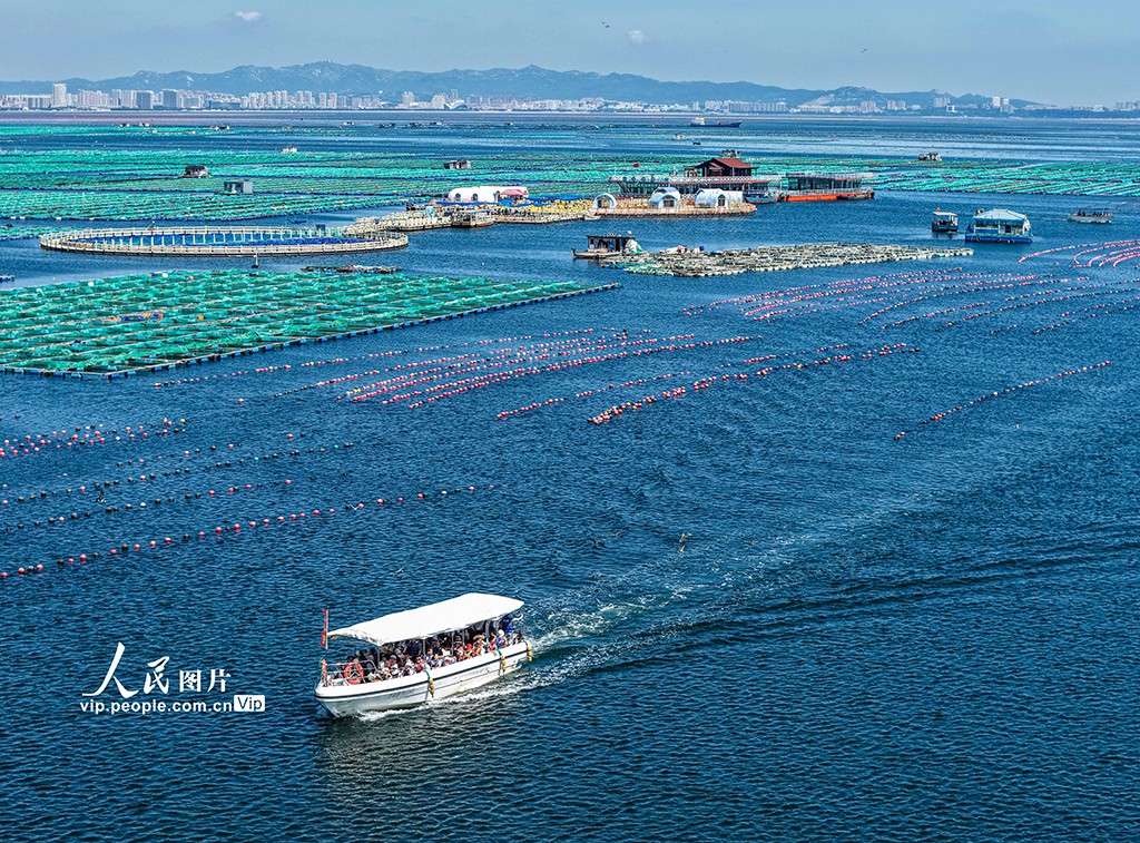 | Pada 12 Ogos 2025, pelancong menaiki bot persiaran semasa melawat ladang marin kebangsaan di Teluk Sanggou di daerah Shidao, bandar Rongcheng, Provinsi Shandong di timur China. (Foto oleh Li Xinjun) |