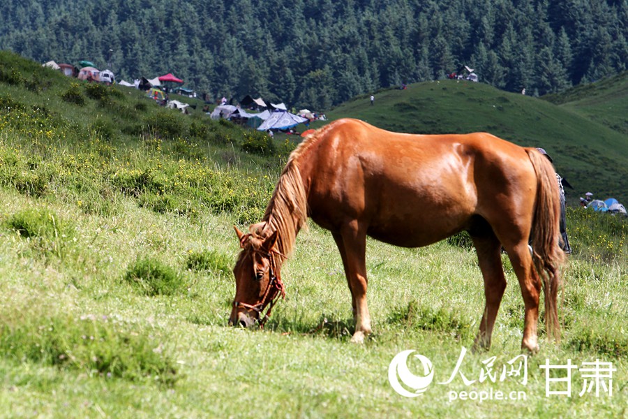 | Pelancong menghayati suasana di Padang Rumput Dangzhou di bandar Hezuo, Kawasan Autonomi Tibet Gannan, Provinsi Gansu di barat laut China. (People’s Daily Online/Mi Yuan) |