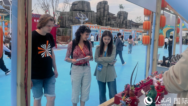 | Pelancong asing melawat pameran warisan budaya tidak ketara ketika berlangsungnya Pesta Sarkas Antarabangsa Wuqiao China yang ke-20 di kaunti Wuqiao, Provinsi Hebei di utara China pada 28 September 2025. (People’s Daily Online/Wang Yuheng) |