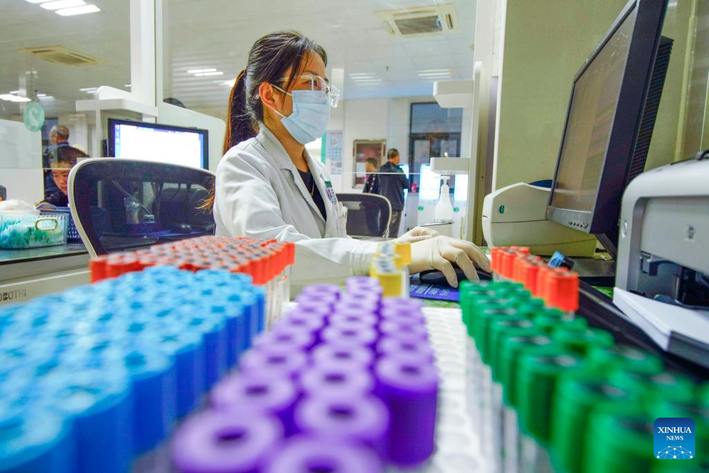 | Seorang doktor sedang bekerja di jabatan makmal sebuah hospital di Zunhua, Provinsi Hebei, di utara China pada 6 Oktober 2025. (Xinhua/Liu Mancang) |