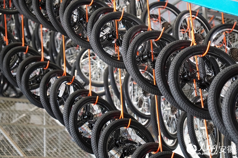 | Foto memperlihatkan bahagian basikal di sebuah bengkel di taman industri basikal di kaunti Wuhe, bandar Bengbu, Provinsi Anhui di timur China. (People’s Daily Online/Chen Ruotian) |